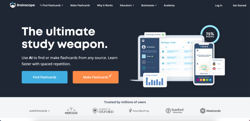 Brainscape offers an advanced AI-powered flashcard system that uses adaptive learning to personalize your study plan. Brainscape’s algorithm assesses how well you know each concept and tailors your flashcard repetitions based on that data. You can upload PDFs into Brainscape, and the platform will automatically generate flashcards for you.